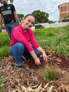 Na última sexta-feira, 31 de outubro, estudantes do 4º semestre do curso de Pedagogia da Faculdade de Educação (FAED/UFMS) participaram de uma atividade prática de plantio de árvores frutíferas no Sistema Agroflorestal Escola da UFMS (SAF-Escola). A ação faz parte do projeto de extensão “Sistema Agroflorestal Escola UFMS: Aproximando Agricultura, Educação e Sustentabilidade”, coordenado pelo professor Dr. Rafael Rossi, da FAED e do Programa de Pós-Graduação em Educação (PPGEDU).